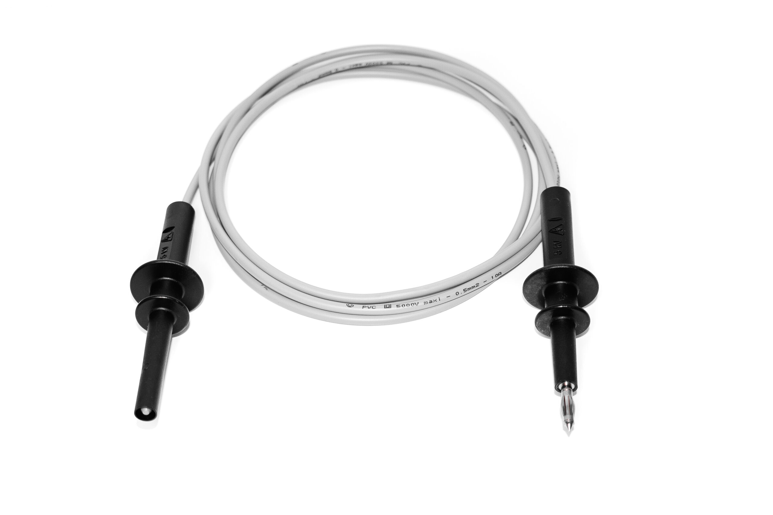 Messbereich: 10A/5000VDC Messkategorie: CAT IV 600VAC, CAT III 1000V, CAT I 5000VDC Gesamtlänge: 2m Bananenstecker-Durchmesser: 4mm 1 Sicherheitsmessleitung von Bananenstecker auf Prüfspitze (schwarz)