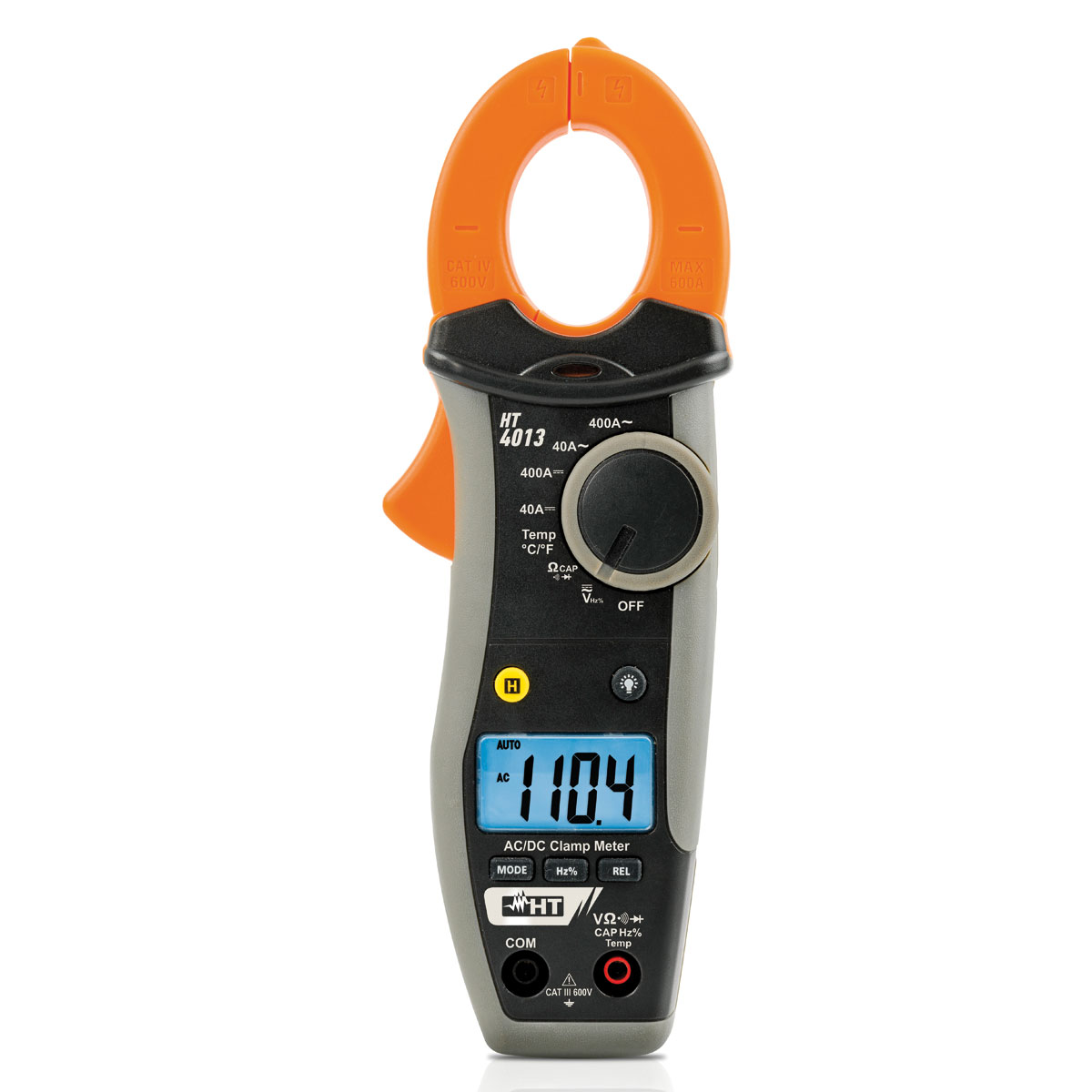 Die robuste Stromzange HT4013 wurde entwickelt um Wechselströme als auch Gleichströme bis zu 400 A in der Überspannungskategorie CAT III 600 V zu messen und den Vorgaben der IEC/EN 61010-1 zu entsprechen. Neben der großen, 4.000 Punkte auflösenden Anzeige ist es mit einer Auto Power OFF Funktion ausgestattet um die Batterien zu schonen und bietet eine Vielzahl von Multimeter-Messfunktionen mit einem weiten Messbereich an.