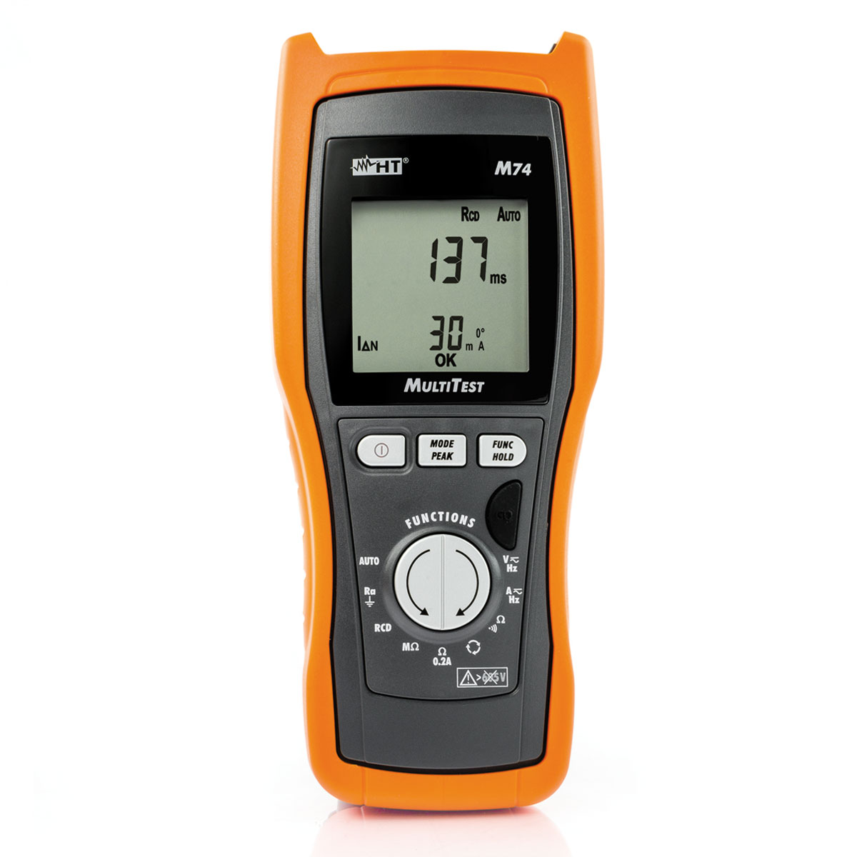 Das Modell M74 ist ein innovatives Kombigerät mit allen Merkmalen eines Echt-Effektivwert-Multimeters (TRMS) für Prüfungen von elektrischen Installationen. Als echtes Allroundgerät zeichnet es sich durch eine ergonomische, ästhetisch ansprechende Form, einen innovativen elektronischen Funktionswahlschalter sowie eine schnelle, einfache Bedienung und Ausführung der Tests aus. Alle Messungen gemäß VDE 0413 Teil 2, 3, 4, 6, 7.