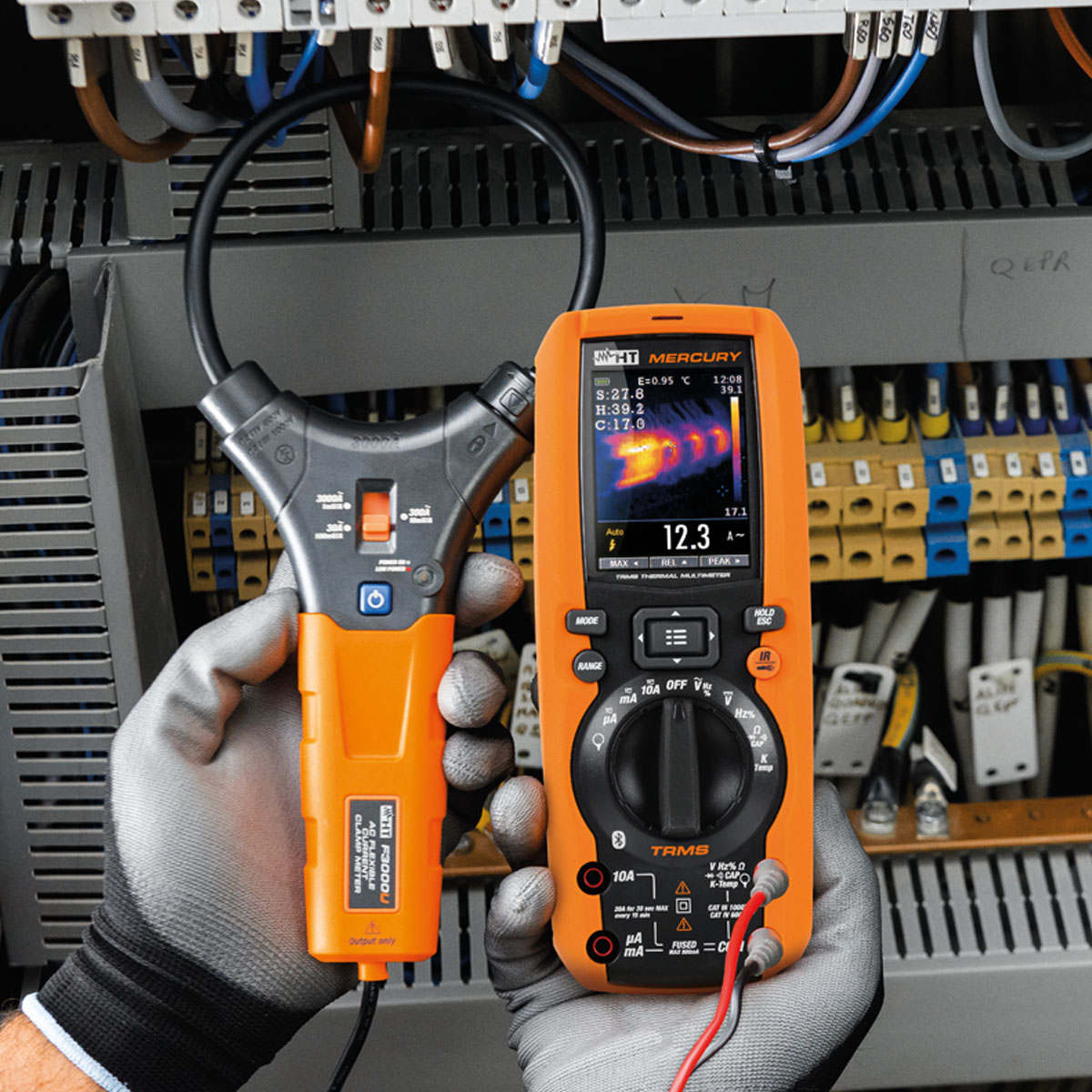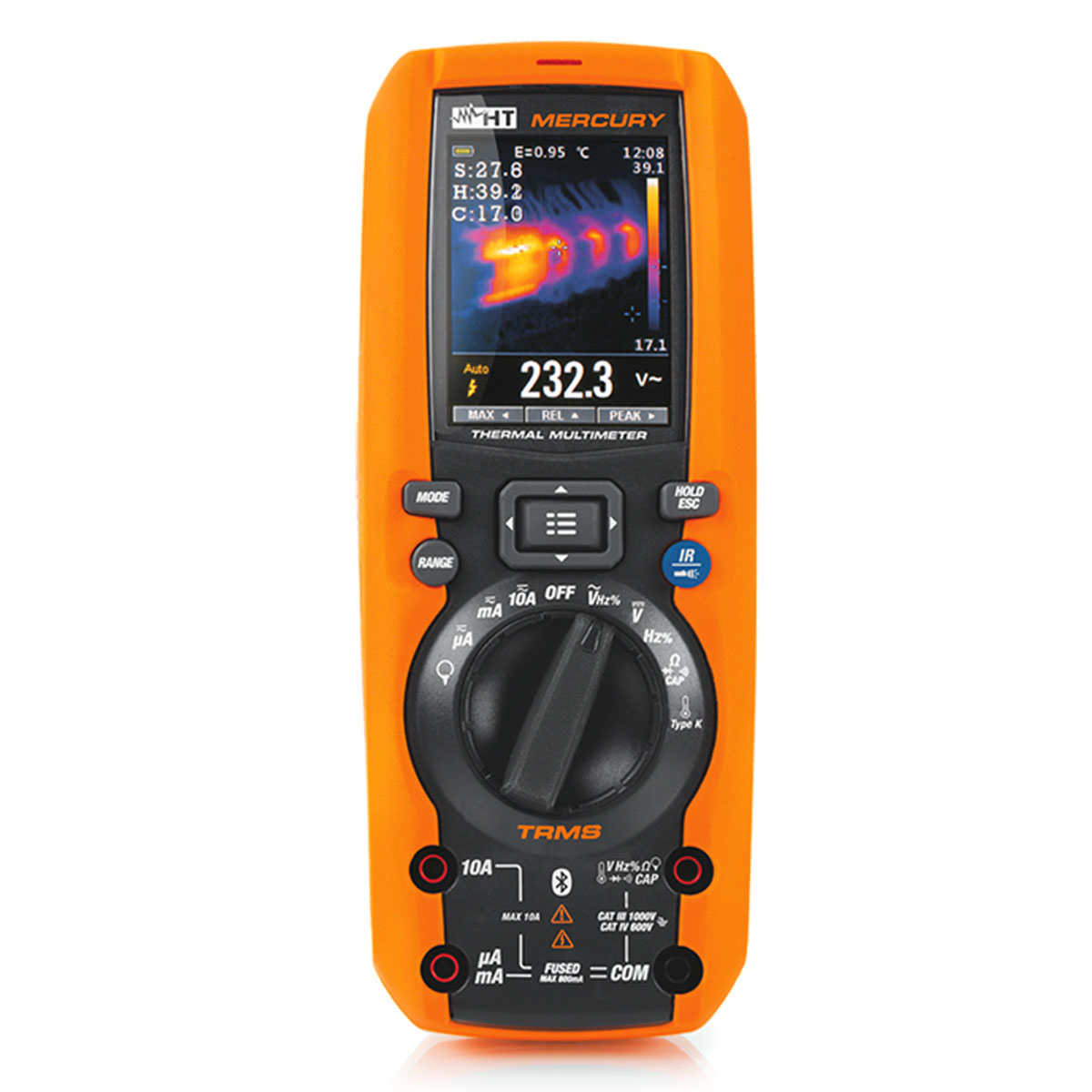 MERCURY ist ein professionelles, präzises TRMS Multimeter mit integrierter Wärmebildkamera in einem besonders schlag- und bruchfesten Gehäuse. Die vielseitigen Messfunktionen erlauben den Einsatz in nahezu sämtlichen elektrischen Bereichen. Mit Hilfe einer komfortablen Auflösung von 80 x 80 Bildpunkten der integrierten Wärmebildkamera können Sie Schaltschränke, Anschlüsse und Kabel aus sicherer Entfernung überprüfen, ohne diese berühren zu müssen. MERCURY entspricht der IEC/EN 61010-1 sowie der Überspannungskategorie CAT III 1000 bzw. CAT IV 600 V.