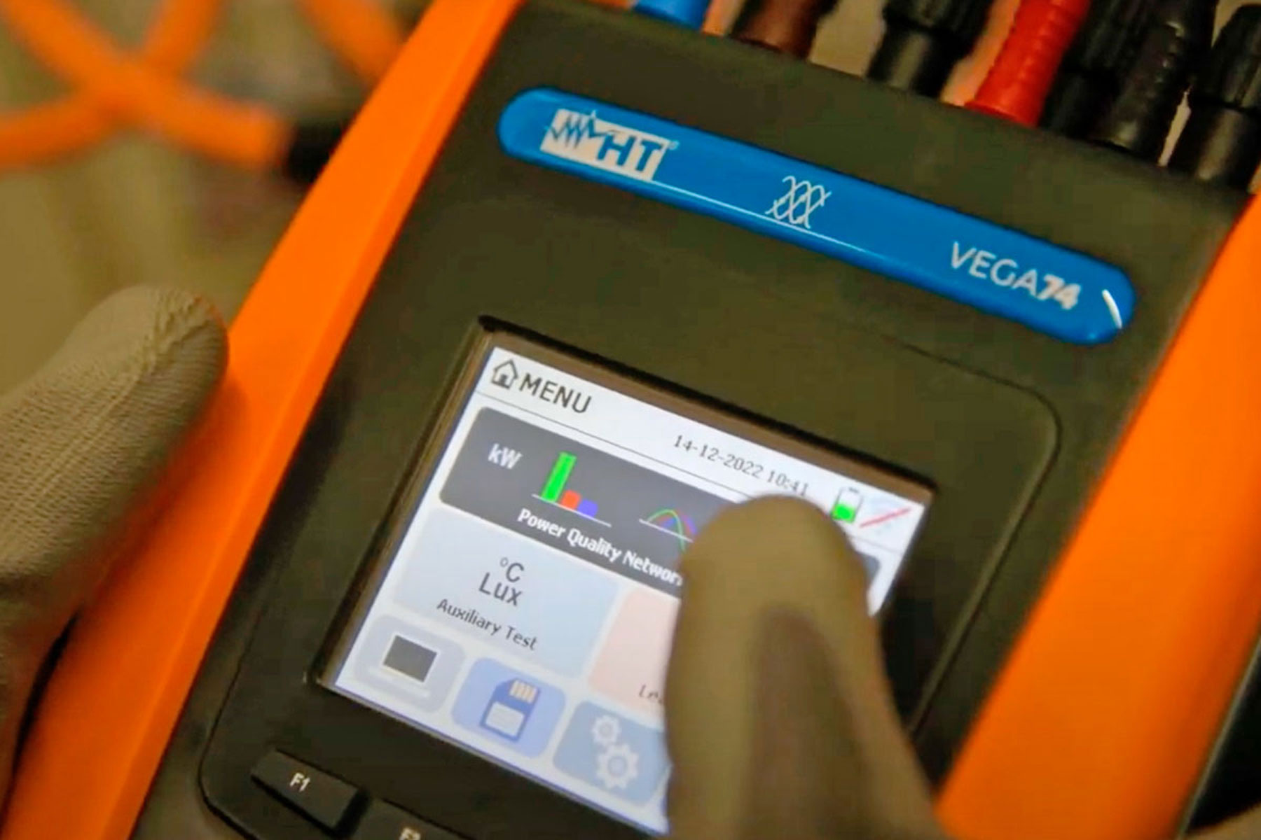 Das VEGA74 erfasst und zeichnet die Werte der Spannungs- und Stromharmonischen bis zur 49. Oberschwingung, mit Berechnung der Gesamtverzerrung (THD %) mit Anzeigen in numerischer Form und Balkendiagramm auf dem Display in prozentualem oder absolutem Wert.